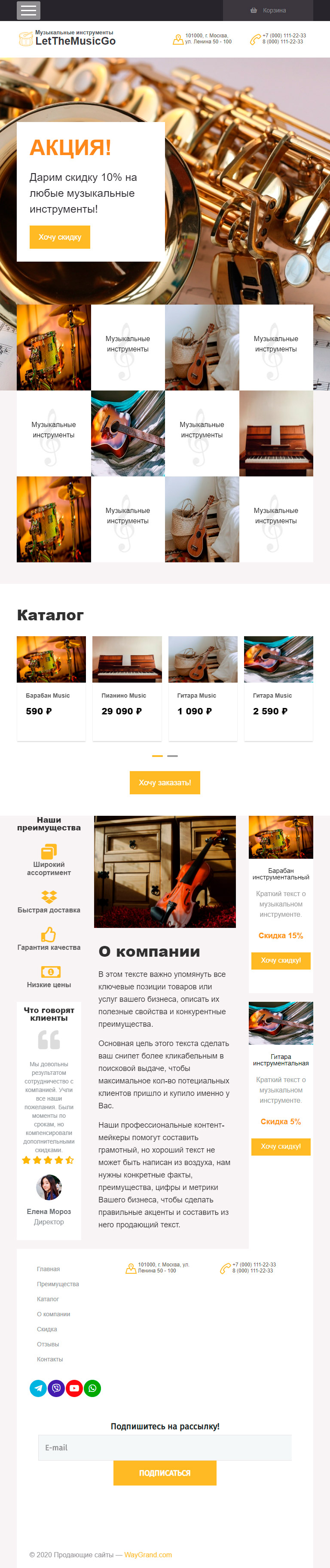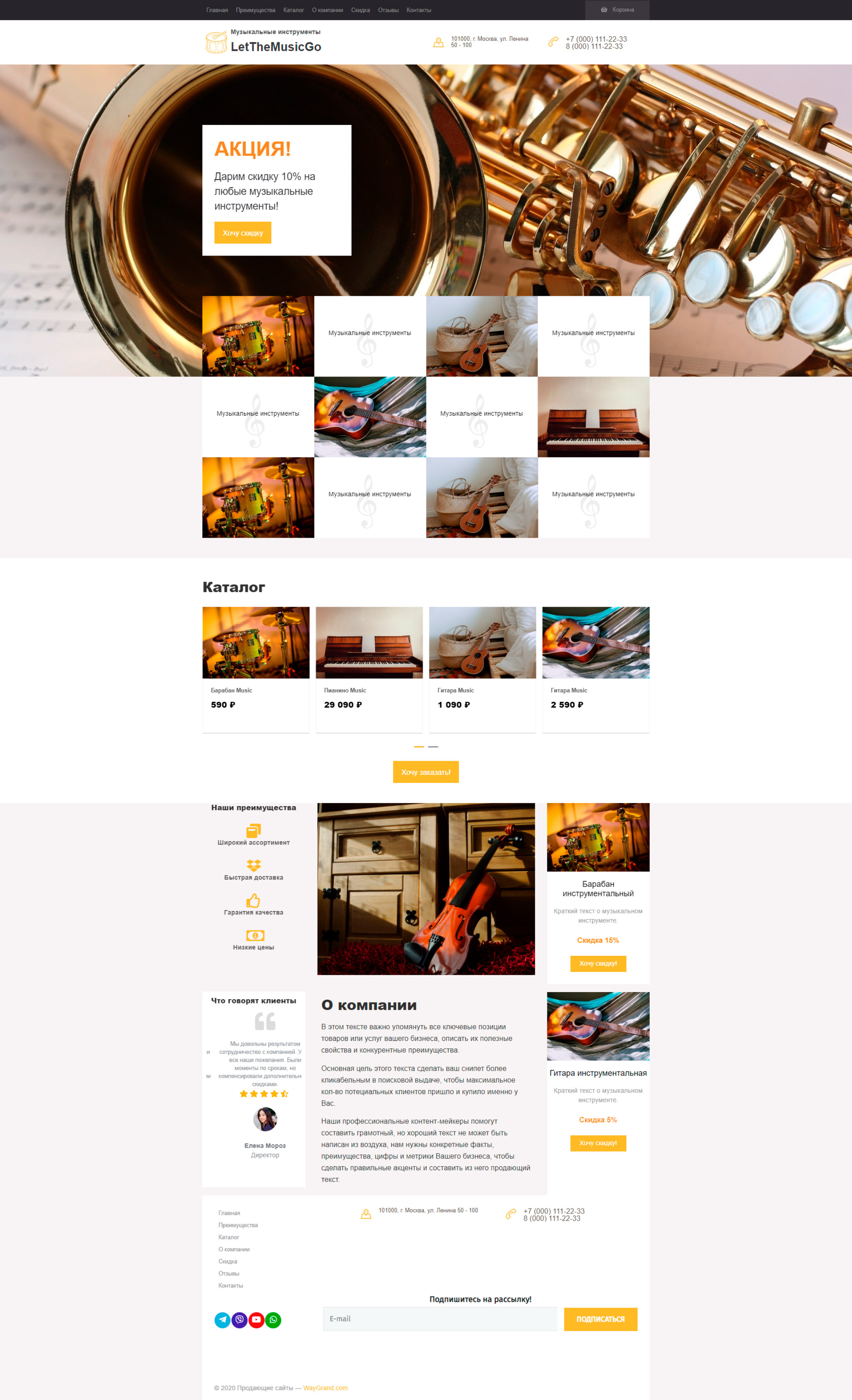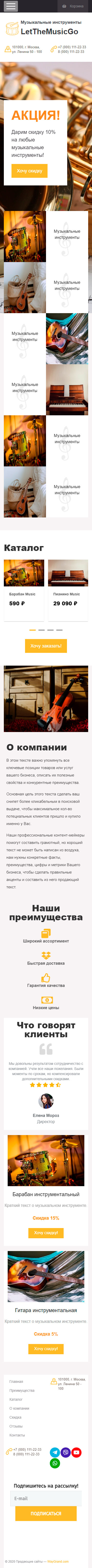 Закажите готовый продающий сайт лендинг #0710201 в Оренбурге за 1-3 дня «под ключ»: свёрстан, отрисован и готов к рекламе. Тематика шаблона «Музыкальные инструменты».