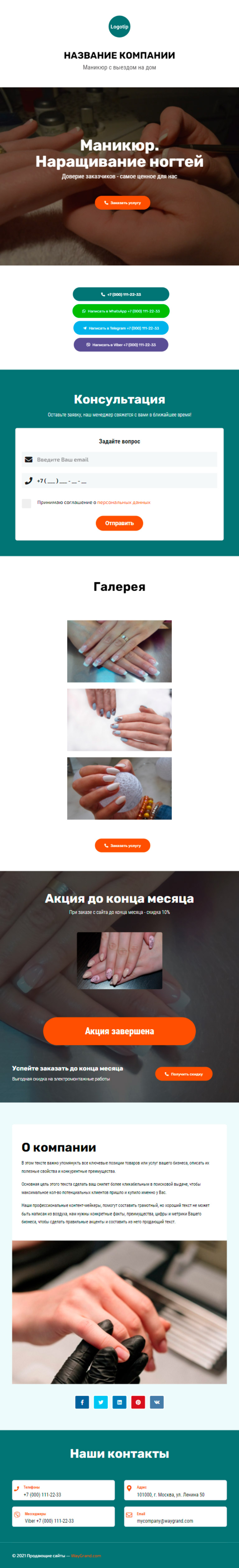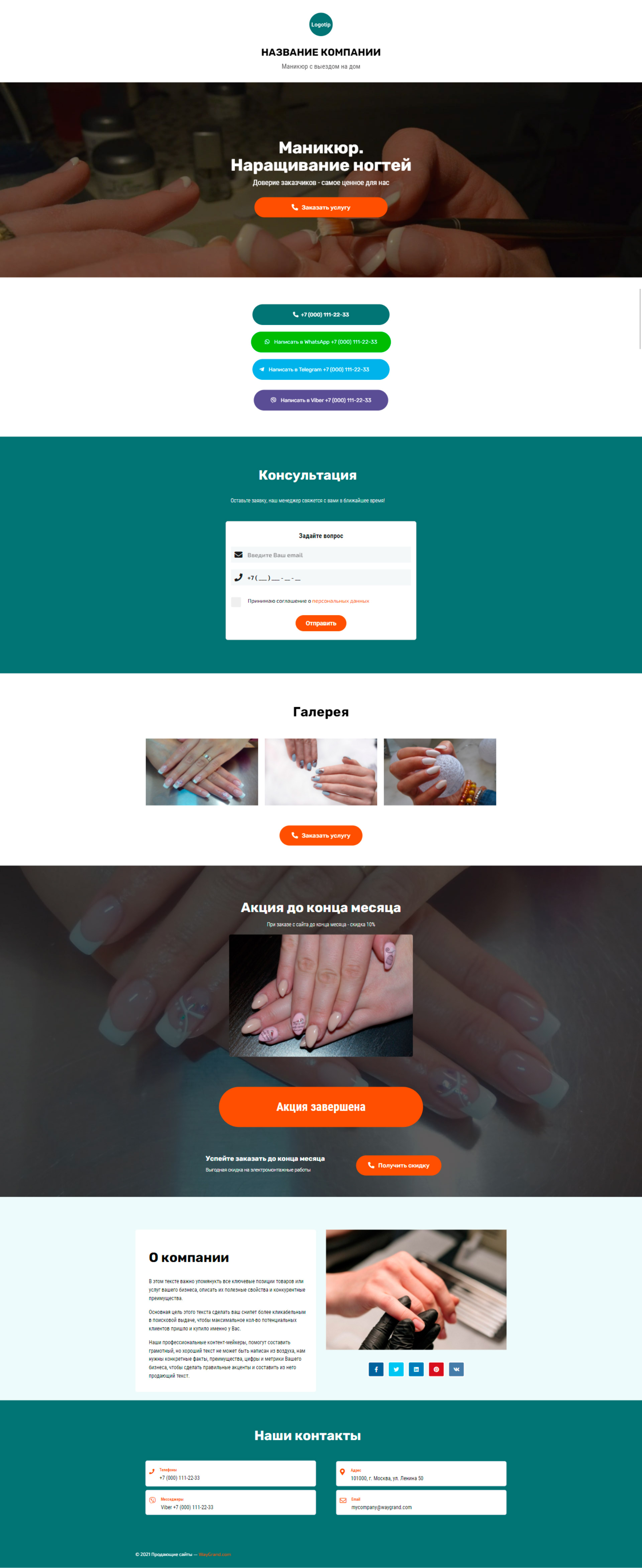Закажите готовый продающий сайт визитка #1107101 в Оренбурге за 5-7 дня «под ключ»: свёрстан, отрисован и готов к рекламе. Тематика шаблона «Маникюр. Наращивание ногтей».