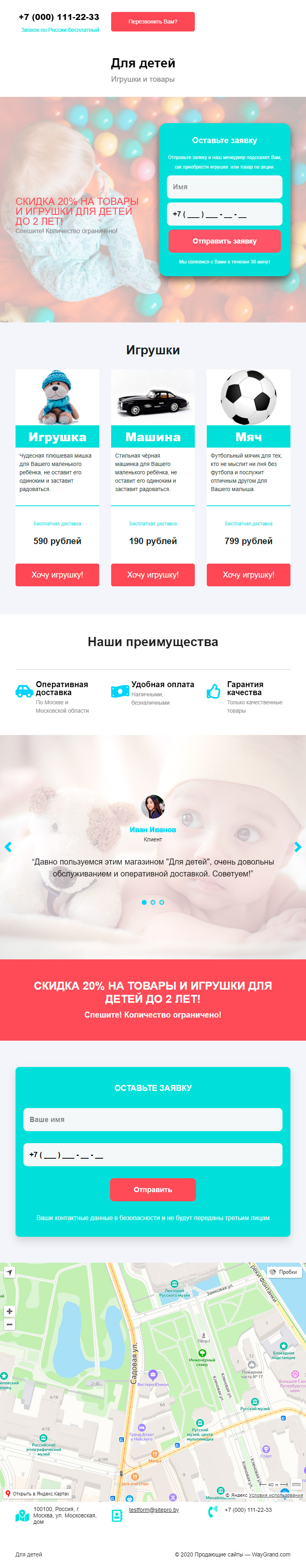 Закажите готовый продающий сайт лендинг #1509202 в Оренбурге за 1-3 дня «под ключ»: свёрстан, отрисован и готов к рекламе. Тематика шаблона «Игрушки и товары».