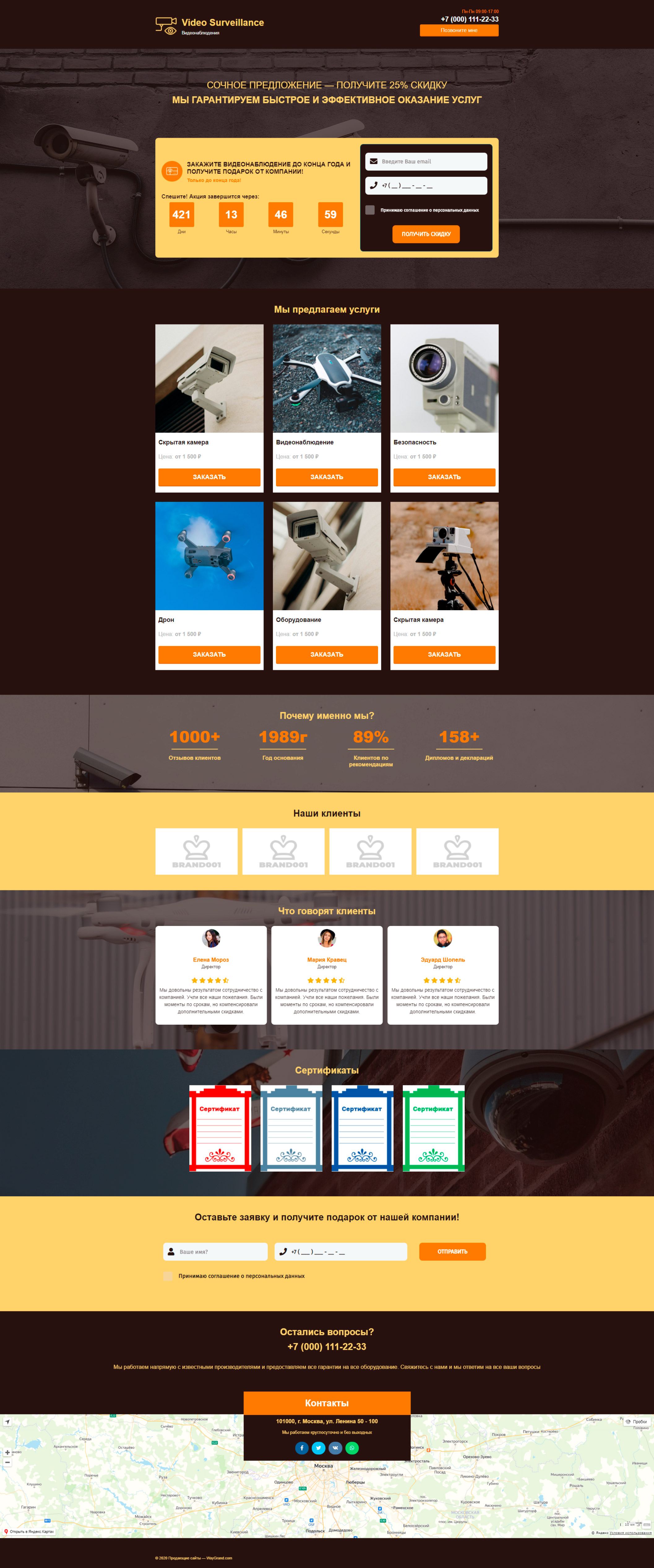 Закажите готовый продающий сайт лендинг #1609203 в Оренбурге за 1-3 дня «под ключ»: свёрстан, отрисован и готов к рекламе. Тематика шаблона «Видеонаблюдение».