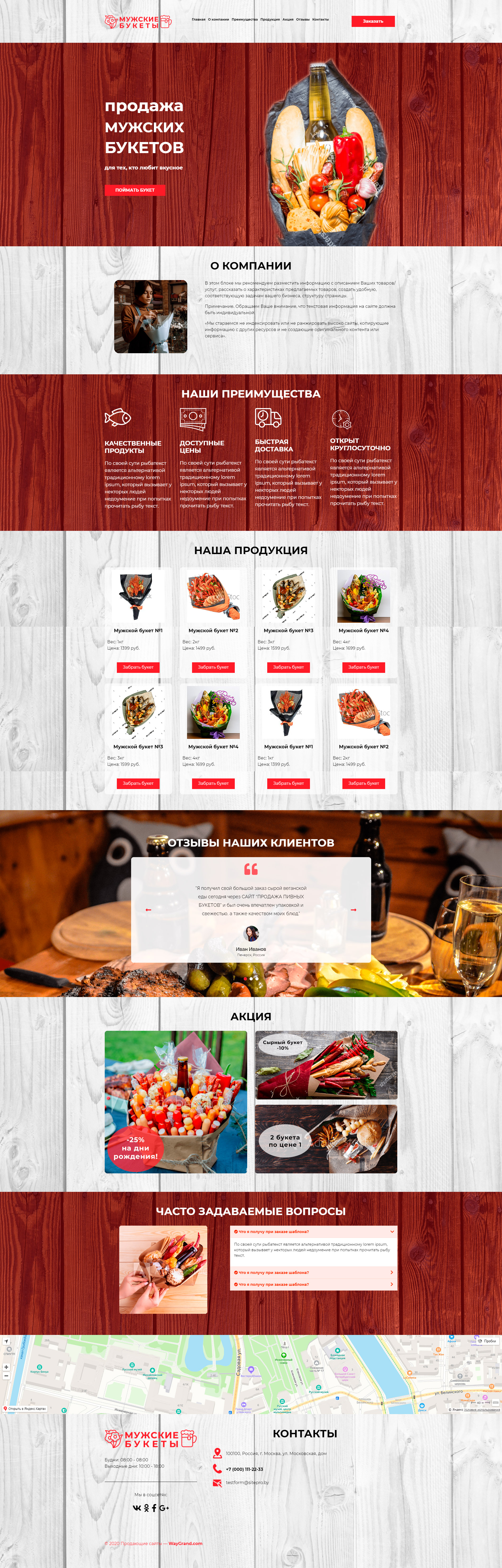 Закажите готовый продающий сайт лендинг #2404204 в Оренбурге за 1-3 дня «под ключ»: свёрстан, отрисован и готов к рекламе. Тематика шаблона «Мужские букеты».