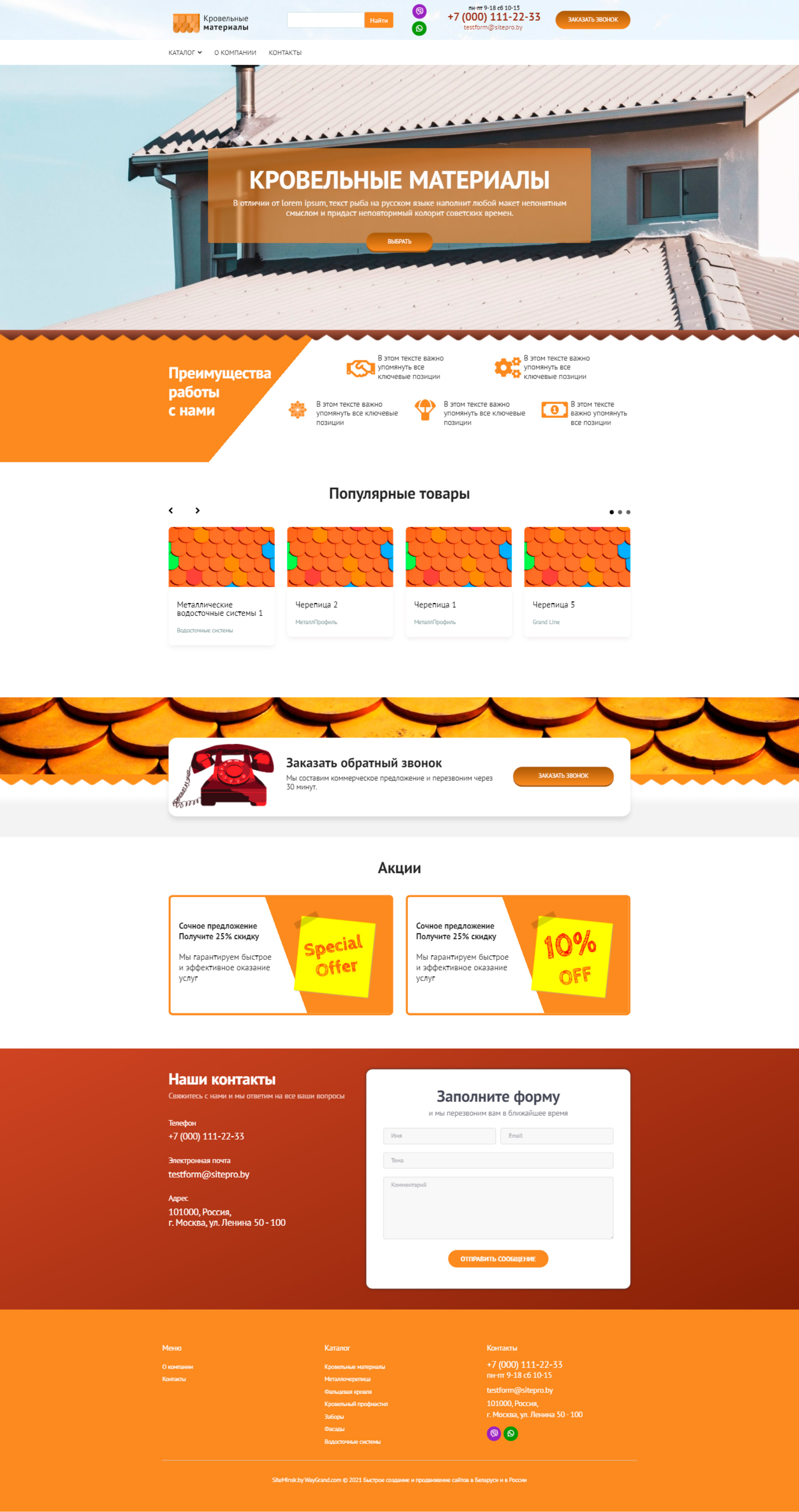 Закажите готовый продающий сайт визитка #2023402 в Оренбурге за 5-7 дня «под ключ»: свёрстан, отрисован и готов к рекламе. Тематика шаблона «Кровельные материалы».