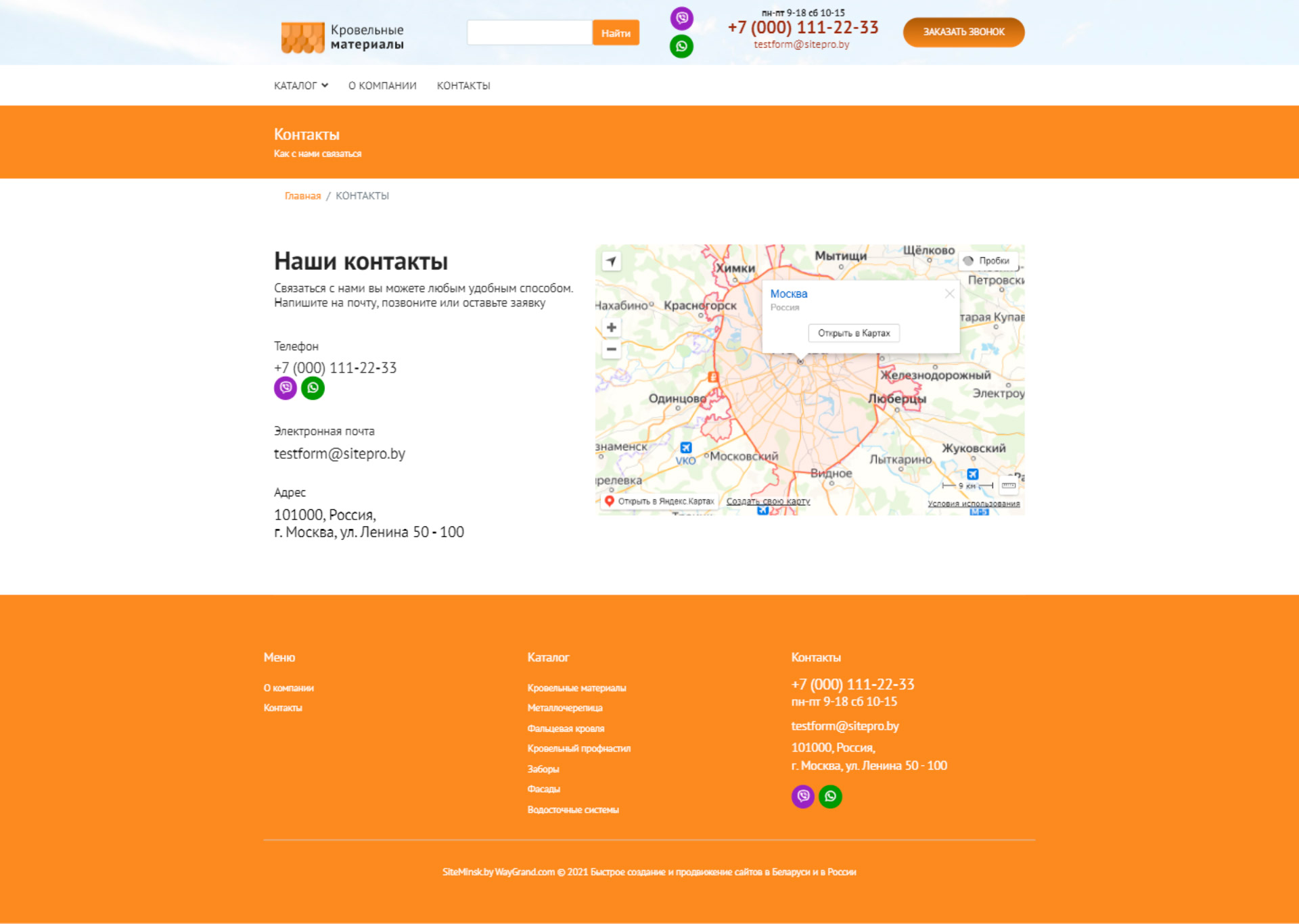 - Страница "Контакты"