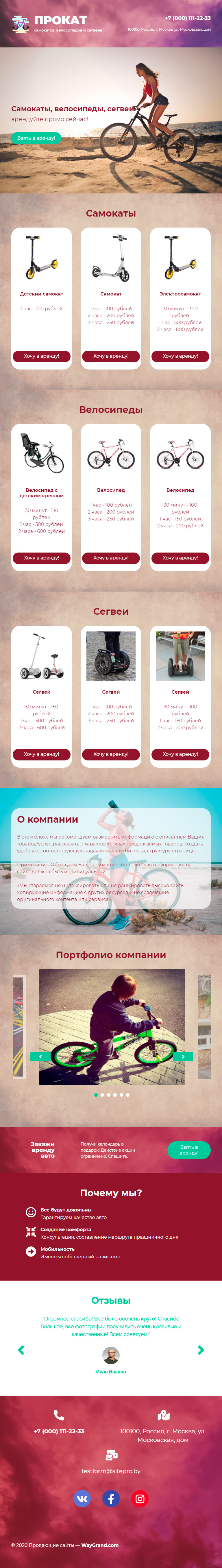 Закажите готовый продающий сайт лендинг #1907201 в Оренбурге за 1-3 дня «под ключ»: свёрстан, отрисован и готов к рекламе. Тематика шаблона «Прокат самокатов и велосипедов».