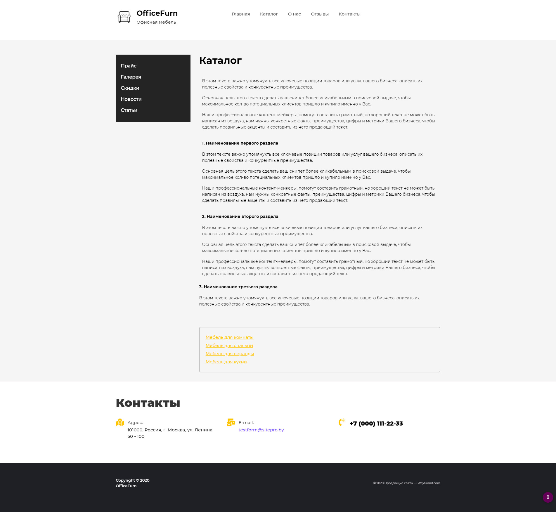 Закажите готовый продающий сайт визитка #0921301 в Оренбурге за 5-7 дня «под ключ»: свёрстан, отрисован и готов к рекламе. Тематика шаблона «Офисная мебель».
