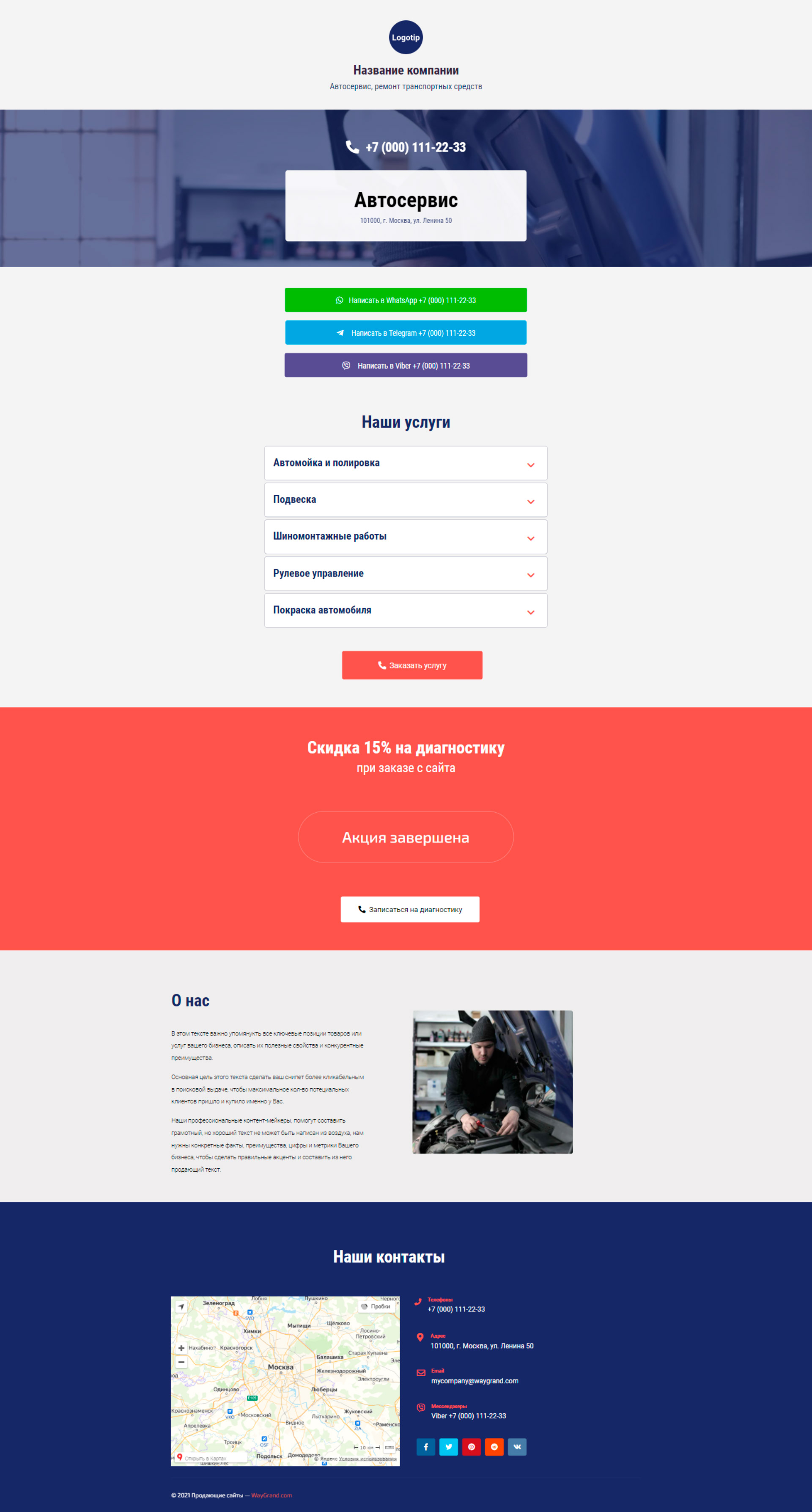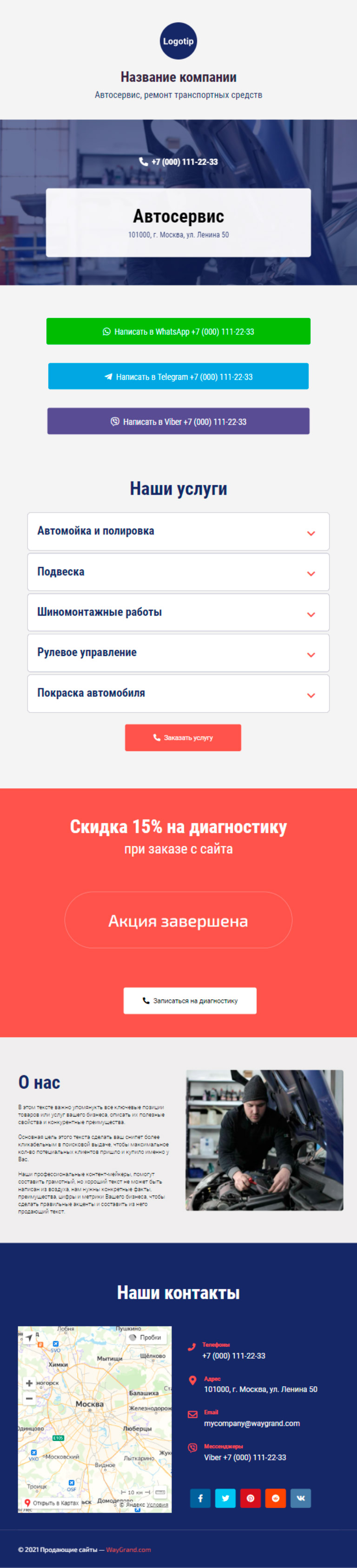 Закажите готовый продающий сайт визитка #0210101 в Оренбурге за 5-7 дня «под ключ»: свёрстан, отрисован и готов к рекламе. Тематика шаблона «Автосервис, ремонт транспортных средств».