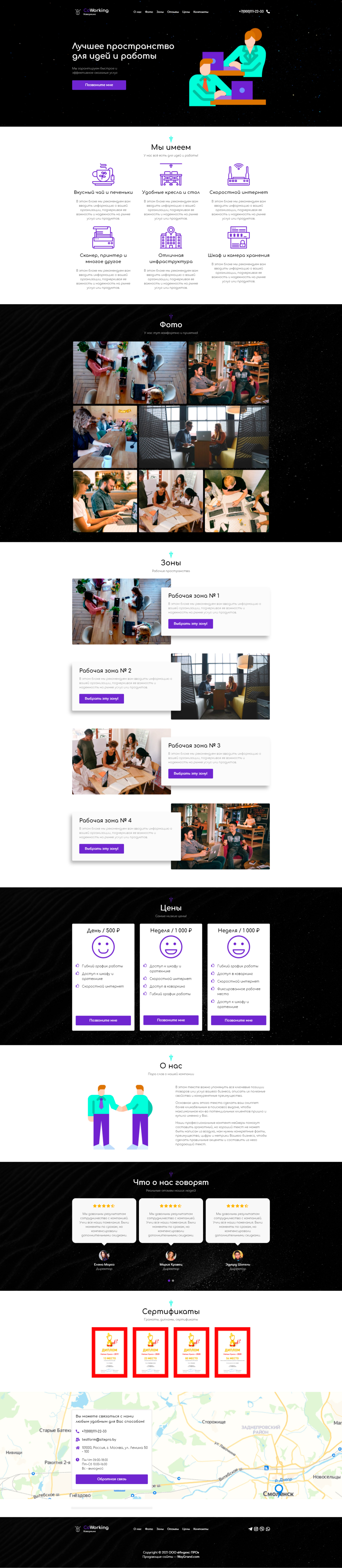 Закажите готовый продающий сайт лендинг #2130201 в Оренбурге за 1-3 дня «под ключ»: свёрстан, отрисован и готов к рекламе. Тематика шаблона «Коворкинг».