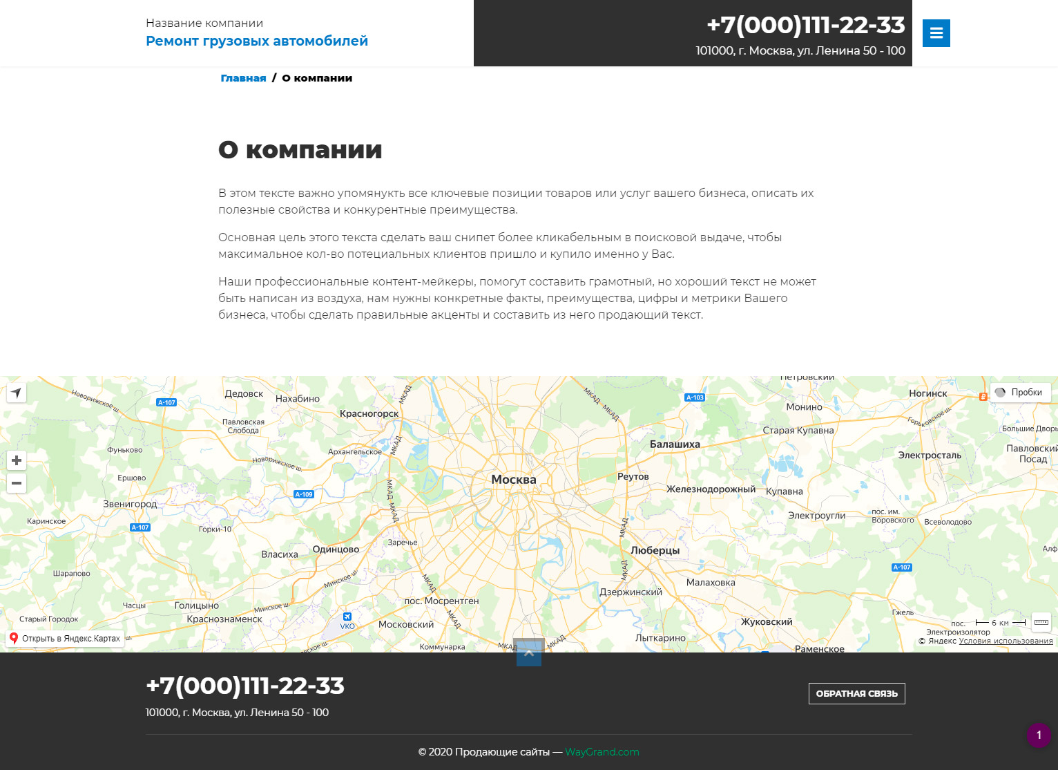 Закажите готовый продающий сайт визитка #0238301 в Оренбурге за 5-7 дня «под ключ»: свёрстан, отрисован и готов к рекламе. Тематика шаблона «Выездная техническая помощь на дороге».