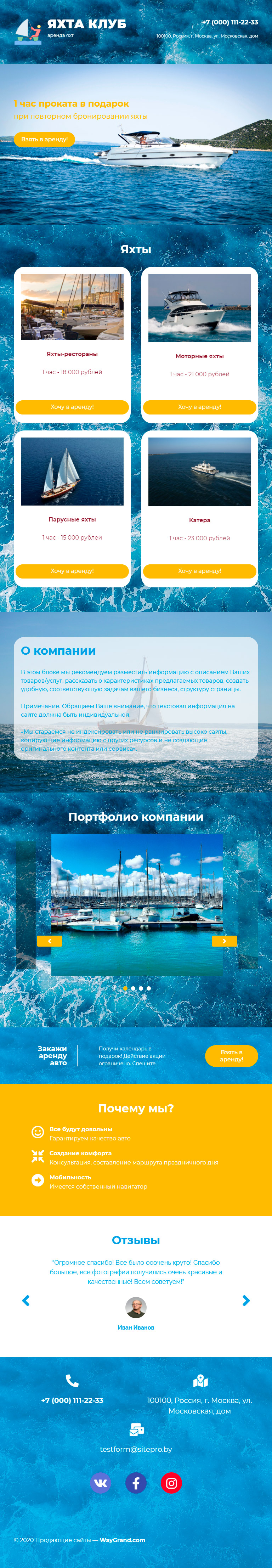 Закажите готовый продающий сайт лендинг #1958201 в Оренбурге за 1-3 дня «под ключ»: свёрстан, отрисован и готов к рекламе. Тематика шаблона «Яхт-клуб (аренда яхт)».