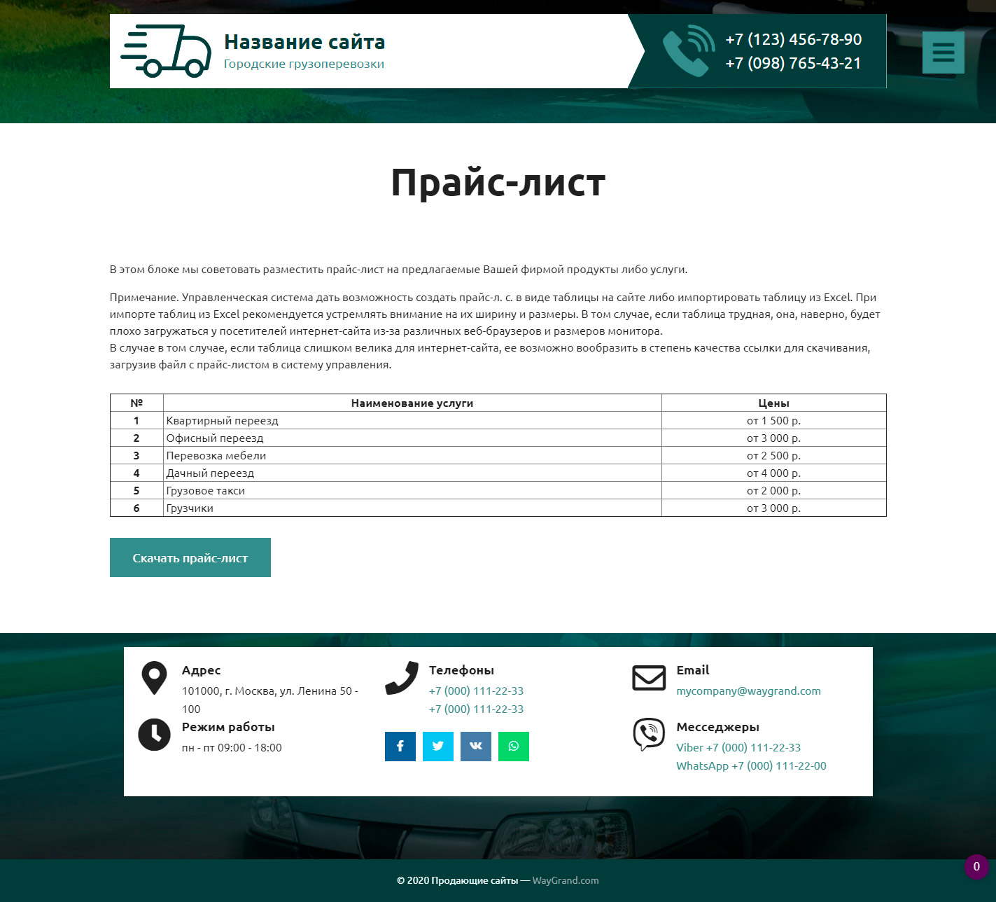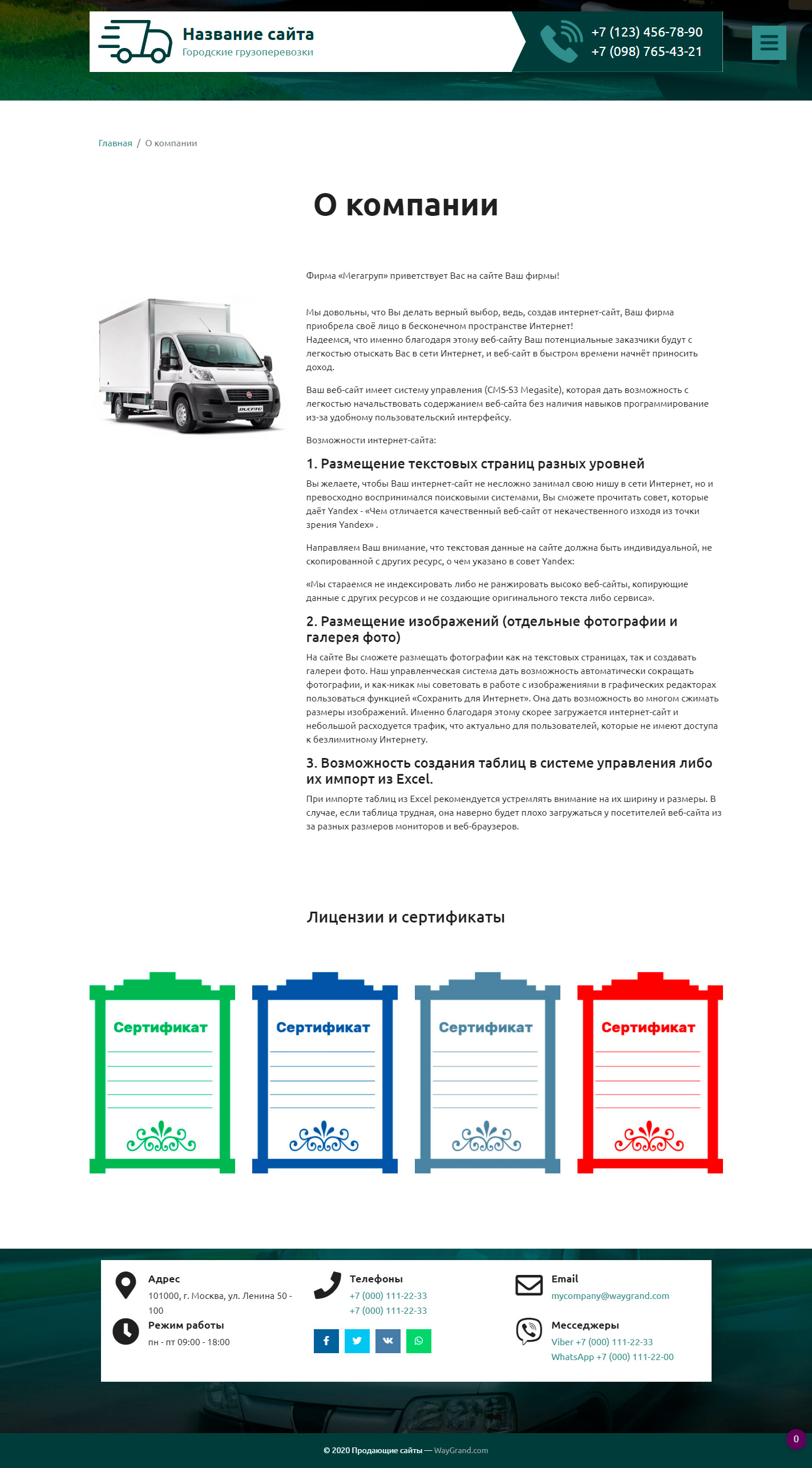 Закажите готовый продающий сайт визитка #2515302 в Оренбурге за 5-7 дня «под ключ» по доступным ценам на WayGrand: свёрстан, отрисован и готов к рекламе. Тематика шаблона «Городские грузоперевозки».