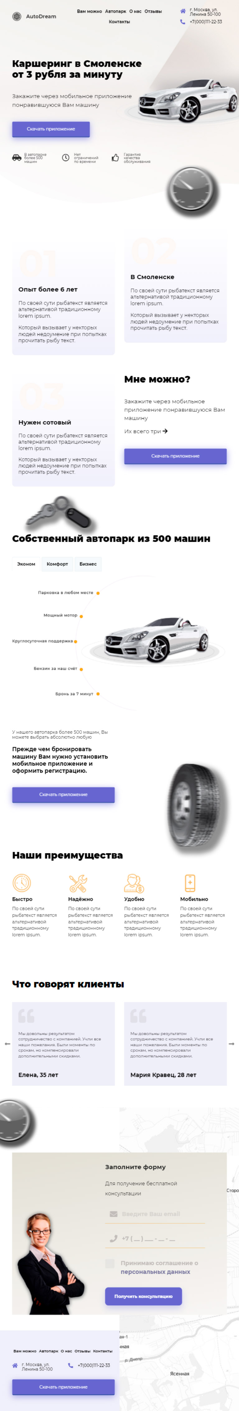 Закажите готовый продающий сайт лендинг #2545202 в Оренбурге за 1-3 дня «под ключ»: свёрстан, отрисован и готов к рекламе. Тематика шаблона «Каршеринг».