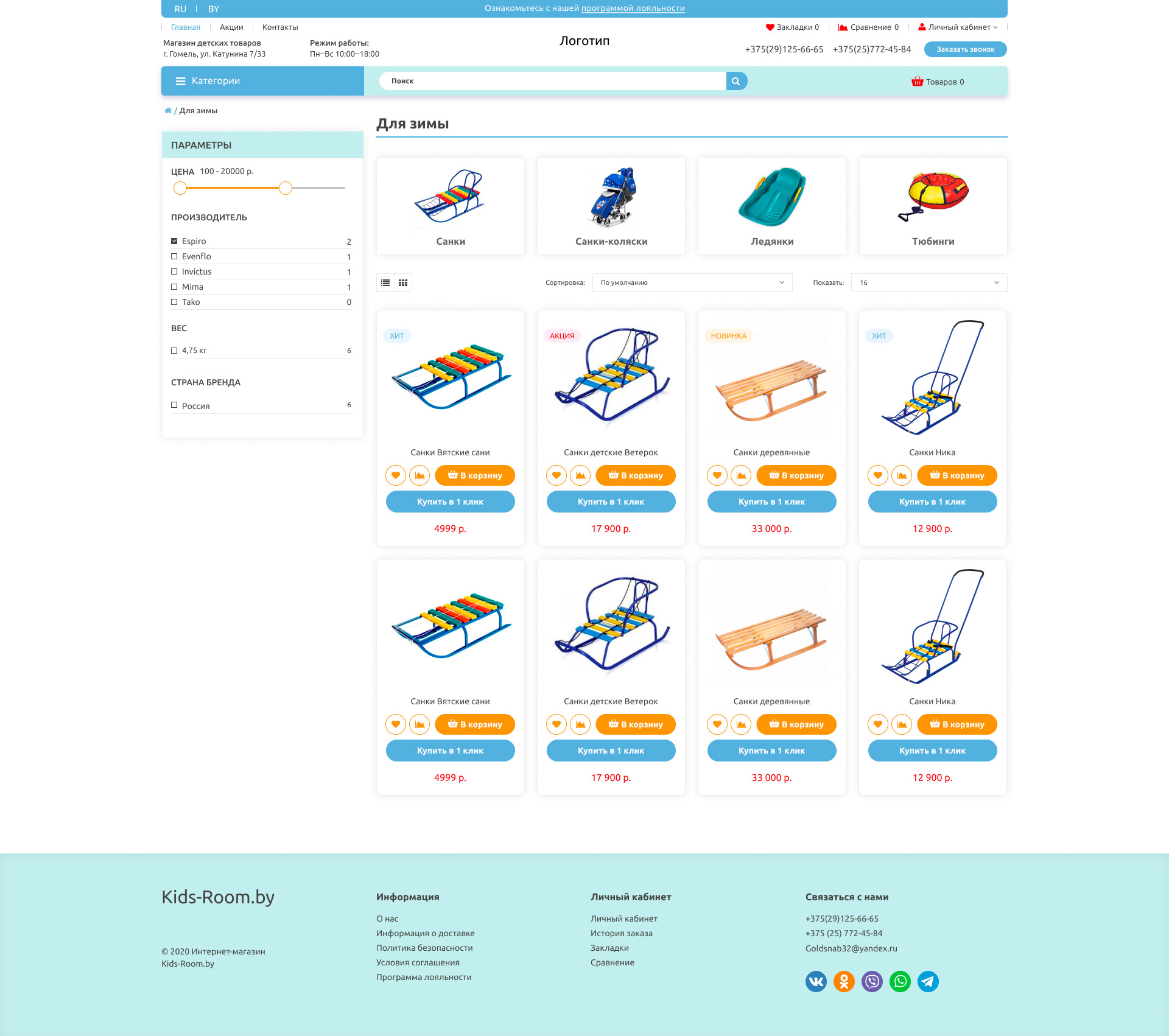 Закажите готовый продающий сайт лендинг #301 в Оренбурге за 1-3 дня «под ключ»: свёрстан, отрисован и готов к рекламе. Тематика шаблона «Детские товары».
