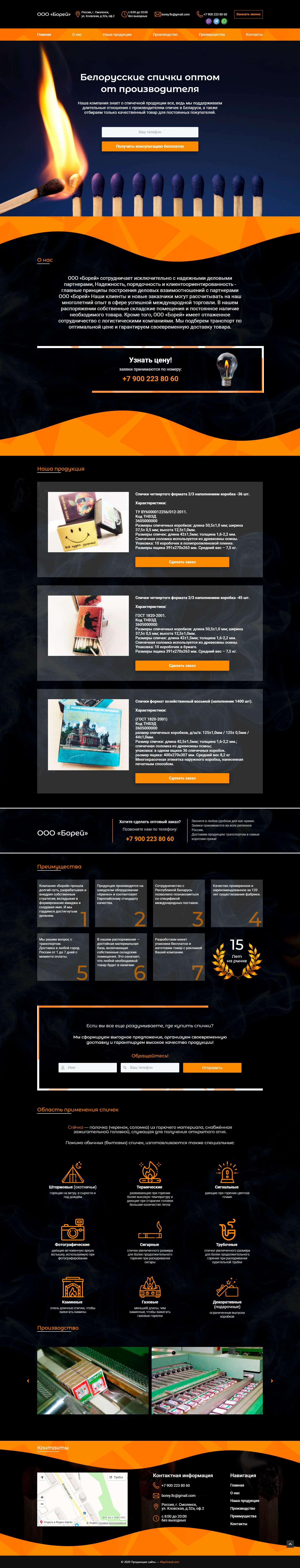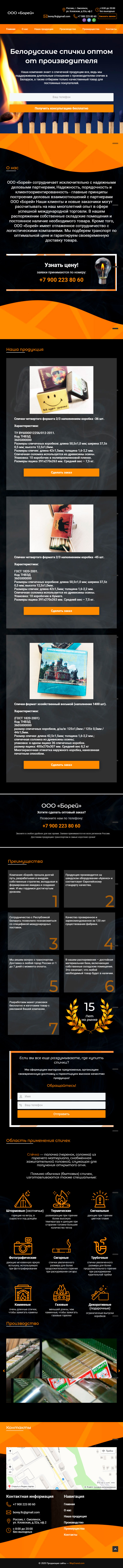 Закажите готовый продающий сайт лендинг #115 в Оренбурге за 1-3 дня «под ключ»: свёрстан, отрисован и готов к рекламе. Тематика шаблона «Белорусские спички оптом от производителя».