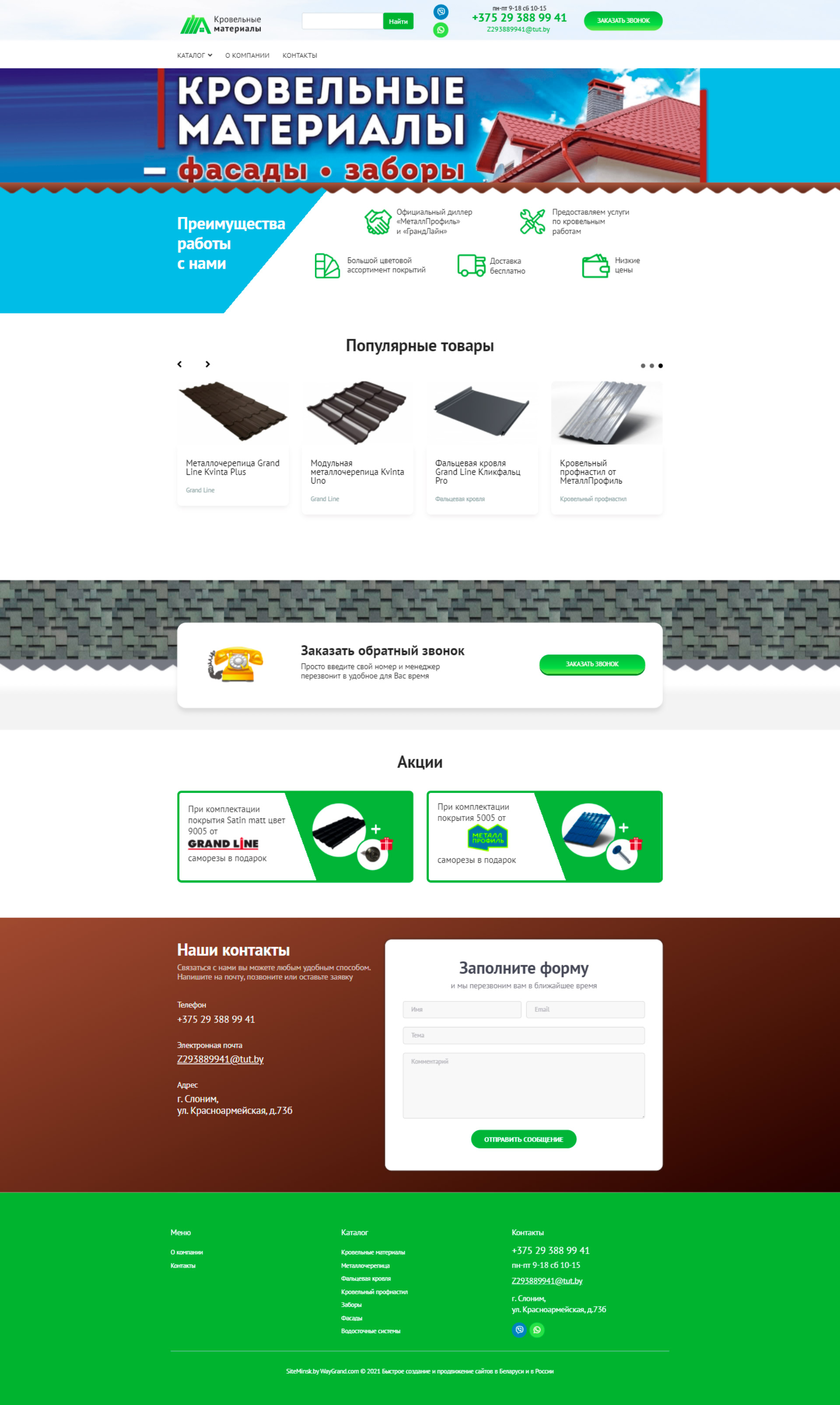 Закажите готовый продающий сайт визитка #324 в Оренбурге «под ключ» на waygrand по выгодной цене: свёрстан, отрисован и готов к рекламе. Тематика шаблона «Кровельные материалы».